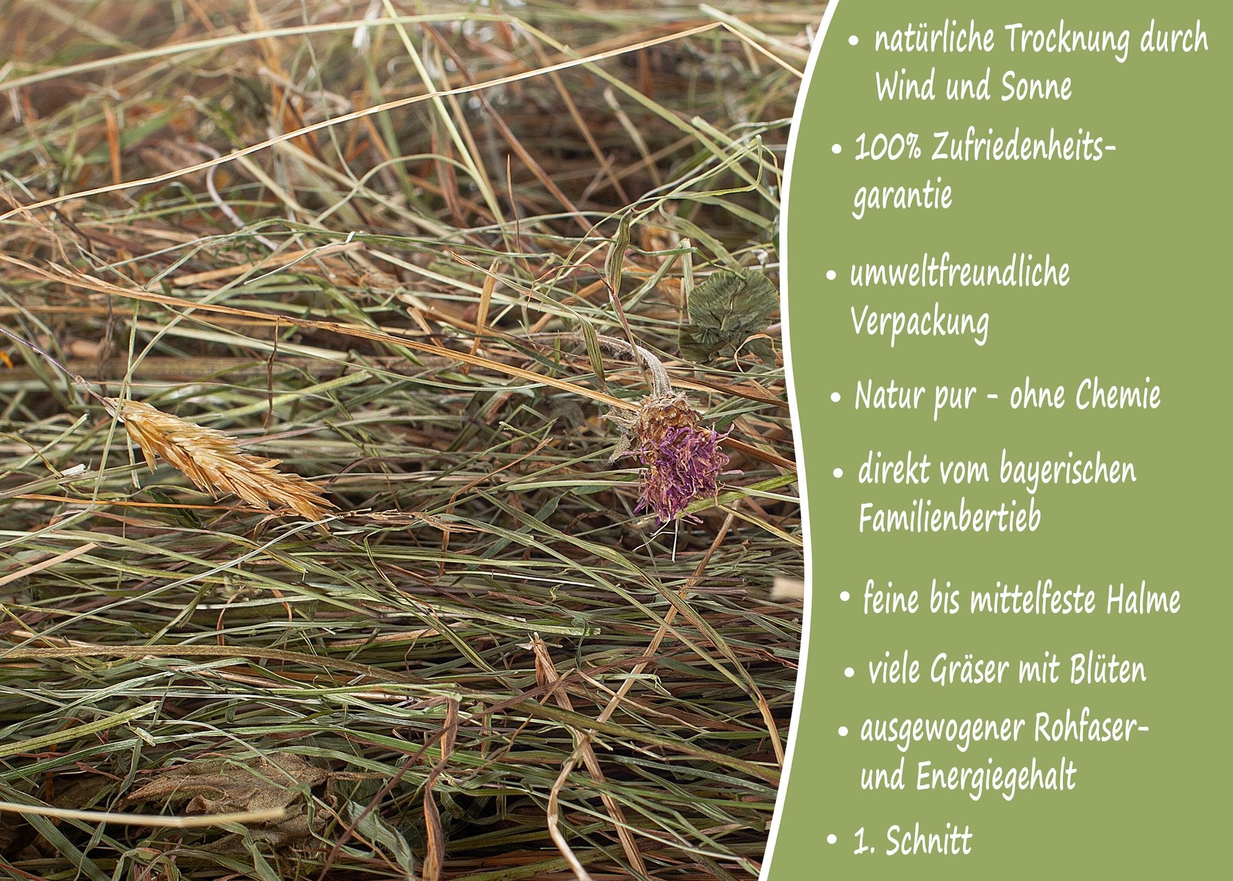 Unser Heu und Stroh kommt direkt von unseren naturbelassenen Wiesen – ohne Umwege, ohne Zusätze. Artgerechte Ernährung für Ihr Tier.